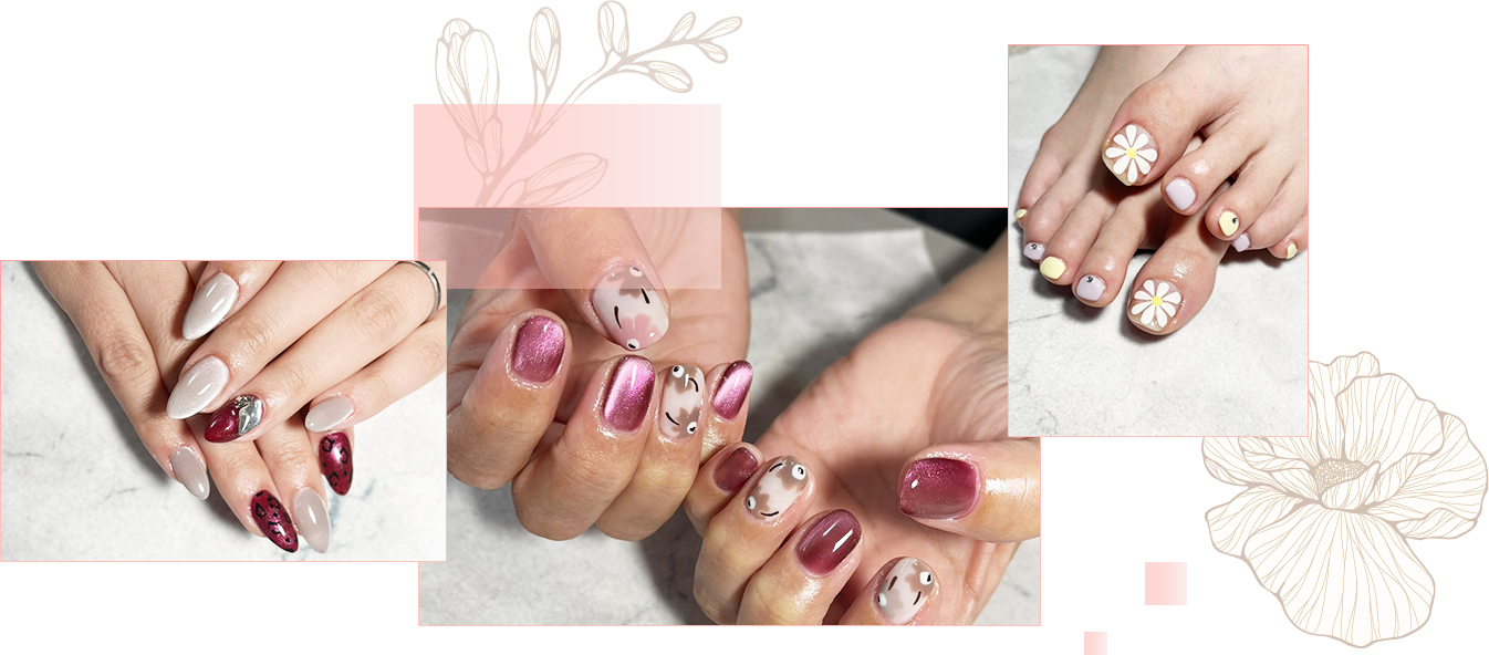 仕上がりやフォルムにこだわり、美しい指先に。お客様のお好みに合わせてピッタリなシンプルアートから、フレンチ・ニュアンスなどの可愛いアートまでお任せください。みなさまにとって理想のデザインやテーマなど、気分やモチベーションの上がるデザインをご提案いたします。